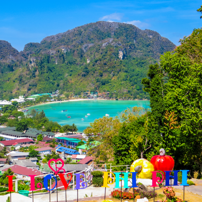 El viaje hacia Phi Phi lo sentí como un punto de inflexión. Llegué allí en un barco pequeño, por un mar casi cristalino y bajo un cielo lleno de nubes que parecían moverse con nosotros. Al llegar, el paisaje hizo que me quedase sin aliento por primera vez: montañas emergiendo del agua y una luz que lo envolvía todo, aún bajo un cielo encapotado.