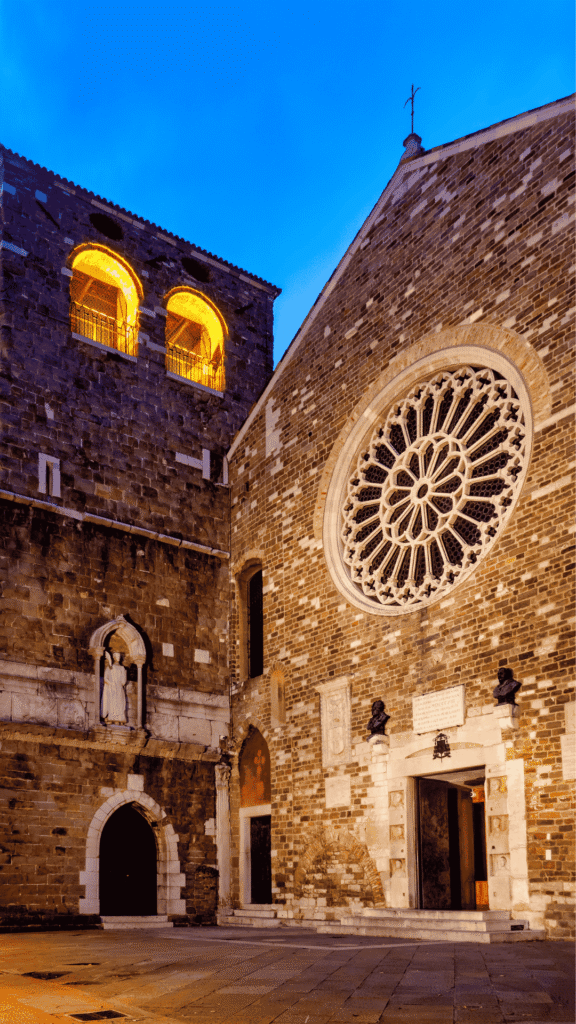 As I reached the top, the cathedral came into view. The Cathedral of San Giusto stood proudly with its weathered stone walls and tall bell tower, a silent guardian watching over the city for centuries. Its mosaics caught the sunlight, glittering faintly like forgotten treasures. The air here smelled different. It was a mix of sea salt, pine from nearby trees, and something ancient, like history itself.